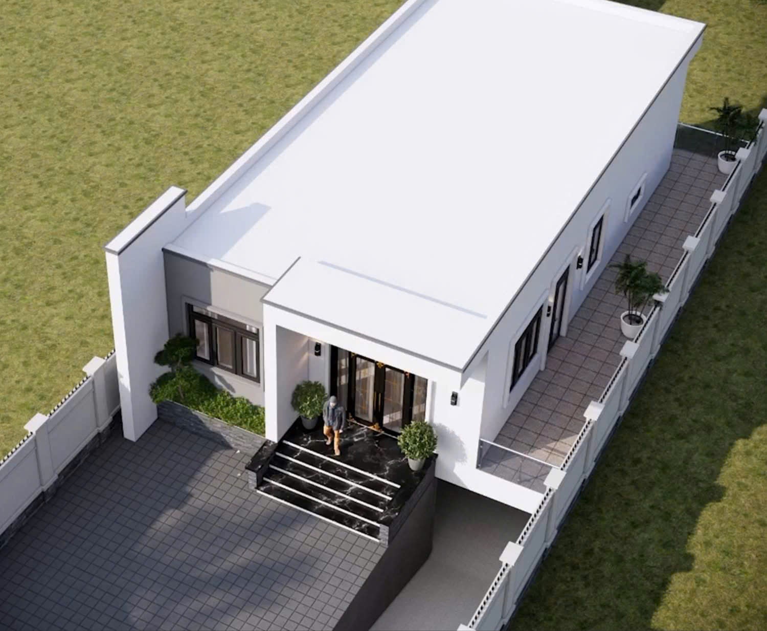 Ngôi nhà là nơi lưu giữ những giá trị tinh thần, là tổ ấm gắn kết gia đình qua từng khoảnh khắc. Với mong muốn mang đến một không gian sống hiện đại – tiện nghi – thẩm mỹ, [Tên công ty] đã thực hiện mẫu thiết kế nhà cấp 4 mái bằng ấn tượng, kết hợp hài hòa giữa phong cách kiến trúc tối giản và sự sang trọng tinh tế.